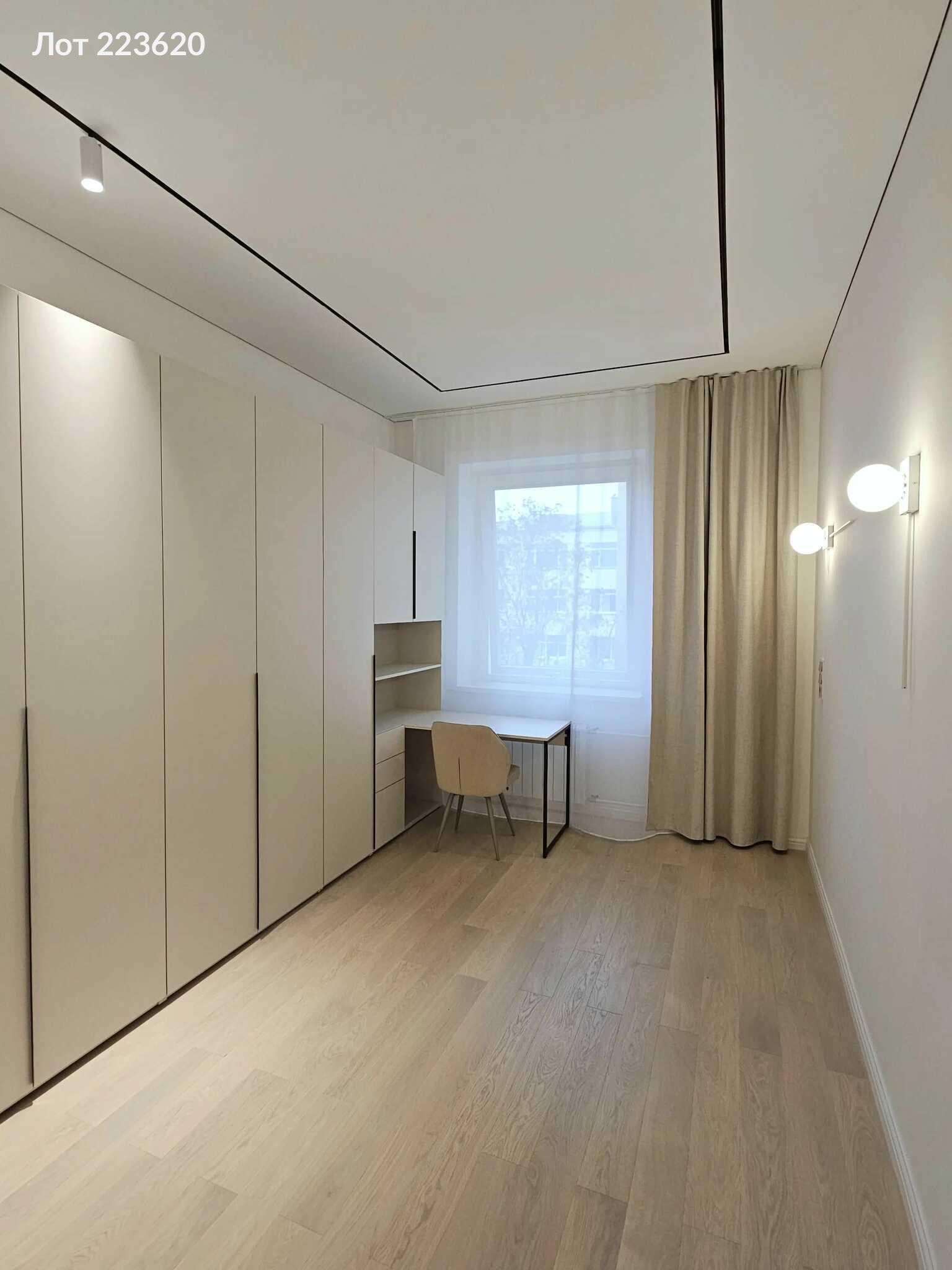 Лот № 223620 Светлая квартира премиум-класса с дизайнерским ремонтом в тихом зелёном квартале. Просторная гостиная и две изолированные спальни, два с/у, отдельная кладовая — каждый метр продуман для комфорта. Паркетная доска, умное освещение с регулировкой температуры света, встроенная бытовая техника премиум-брендов — заезжай и живи. Окна во двор с вековыми деревьями, закрытая парковка во дворе, консьерж.
